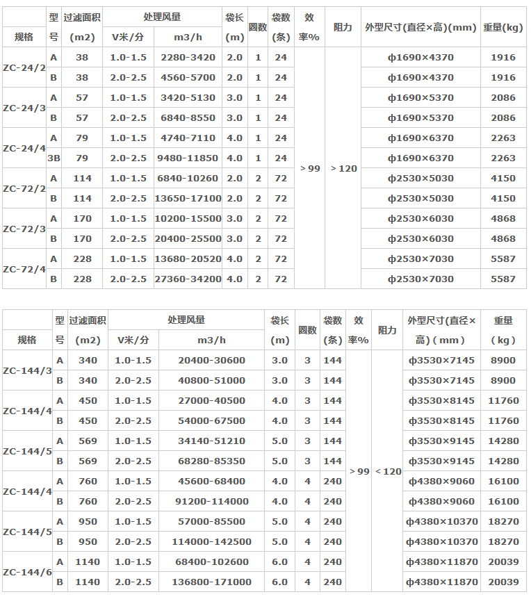 用戶選用應注意對溫度高,濃度大、顆粒細的粉塵應選用A型,反之用B型為宜,如濃度大于15g/m3前面應加一級旋風除塵器。